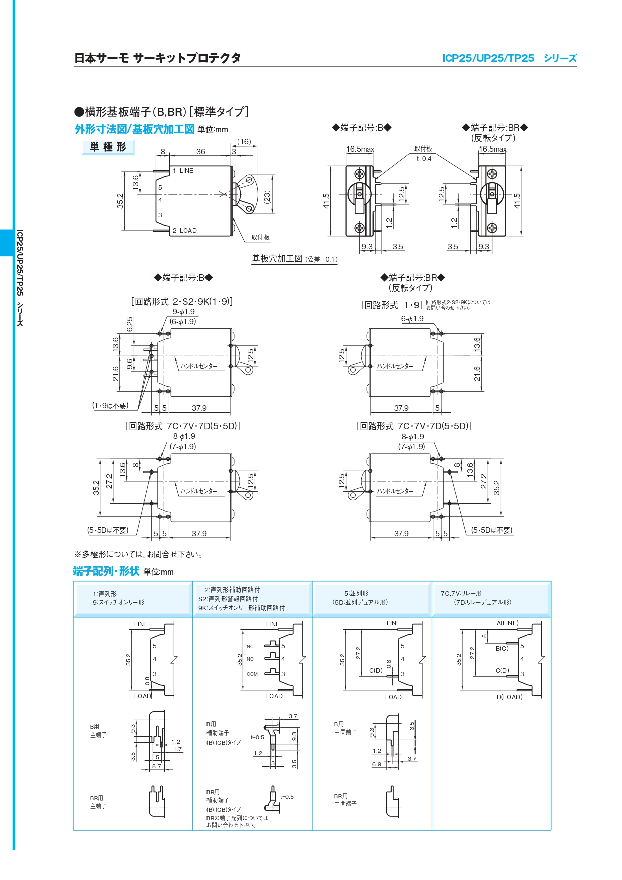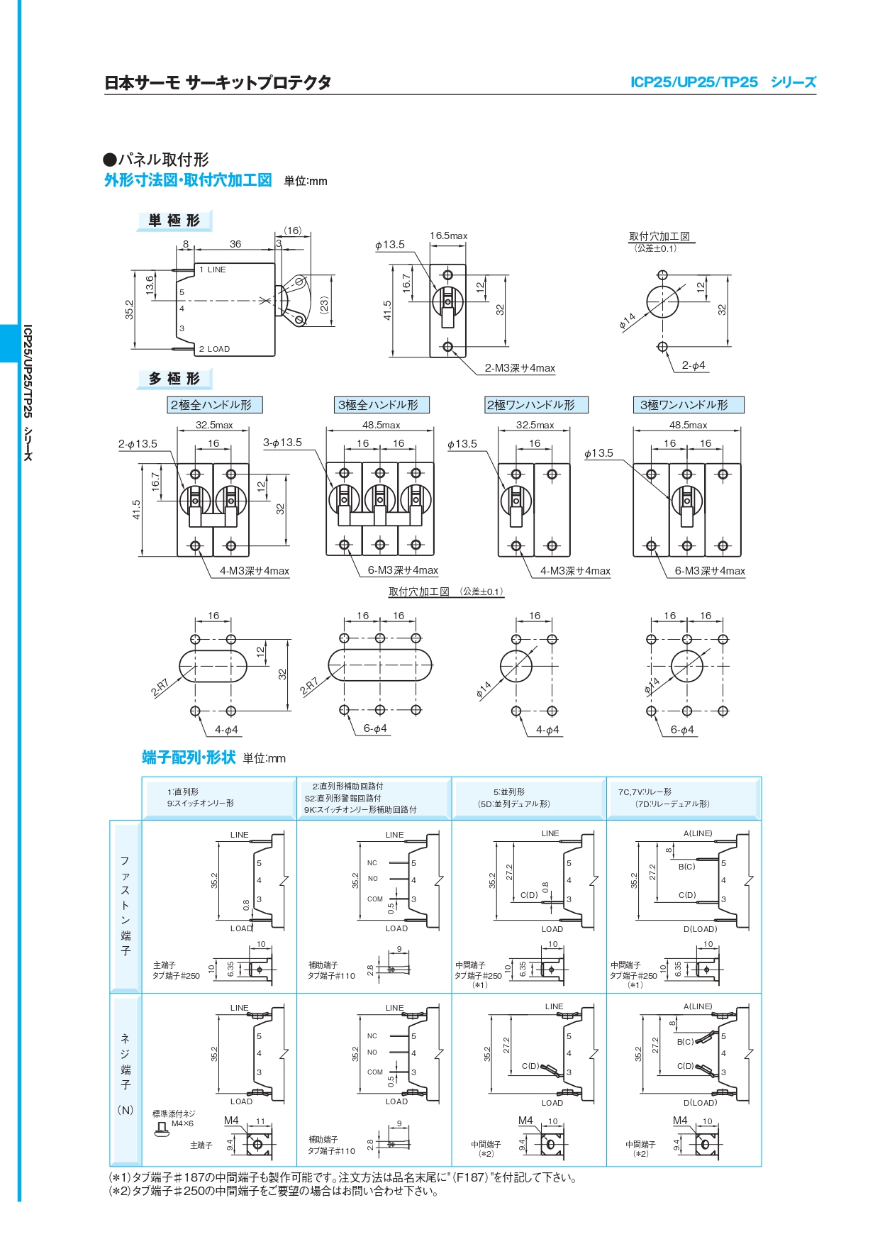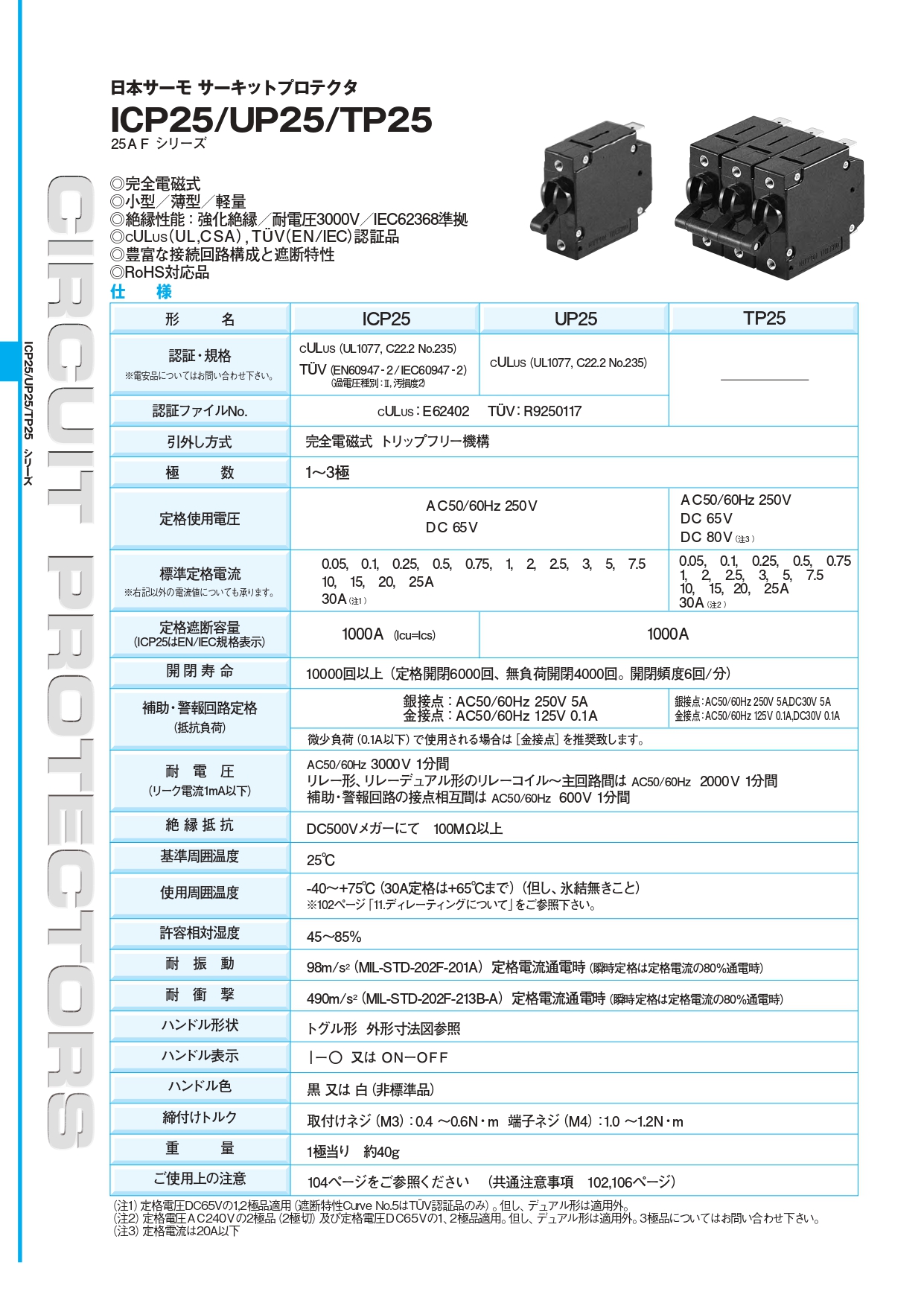 トグル形25Aフレーム 型名:ICP25/UP25/TP25 シリーズ 25AF シリーズ