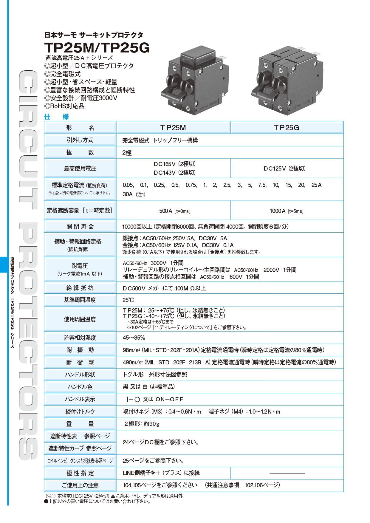 AC用及びDC80V以下のスイッチもございます。 サーキットプロテクタの仕様をご覧ください。