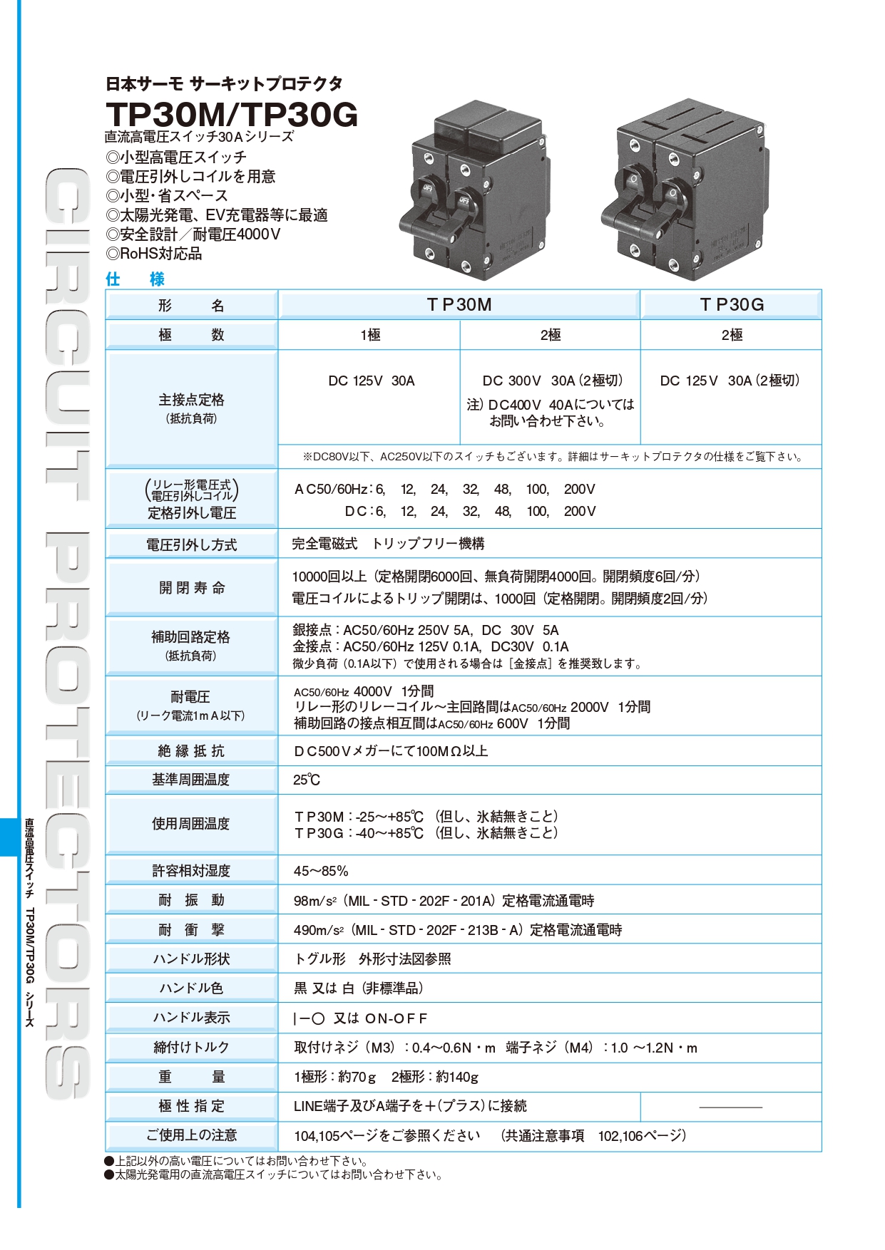 詳細はサーキットプロテクタの仕様をご覧下さい。